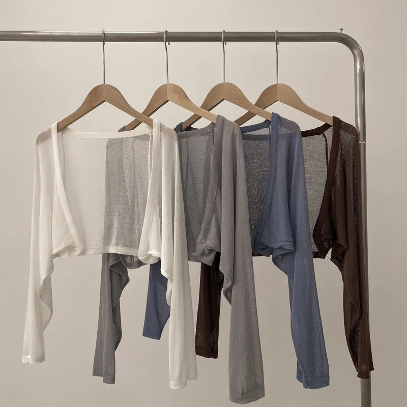 Short Ice Silk Knitted Sun Protection Cardigan Women's Thin Summer Suspender Skirt Layered Gauze Jacket Air-conditioned Cover Up