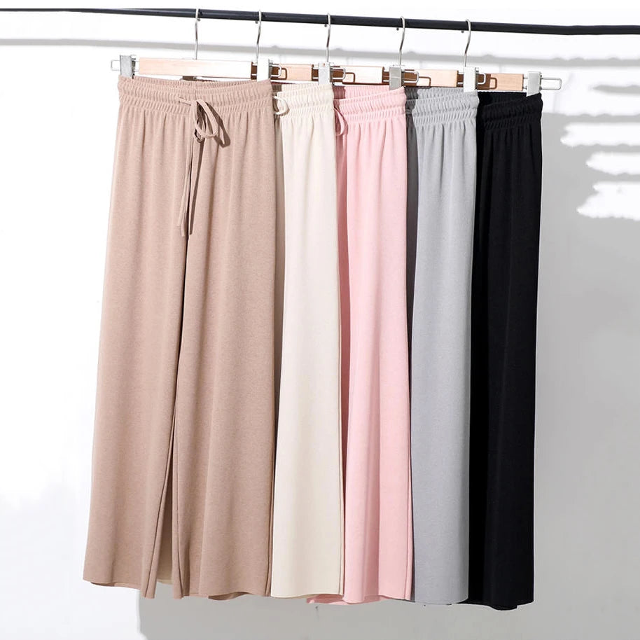 Slacks Women's Loose Summer Pants Soft Ice Silk Ankle-Length Black Wide Leg Pants Grey Khaki Women High Waisted Trousers 2025