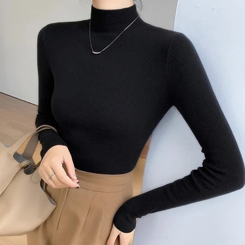 Solid White and Black Tops Sweaters 2025 Autumn Winter Long Sleeve Turtleneck Pullovers Fashion Womens Sweaters Femme Clothing