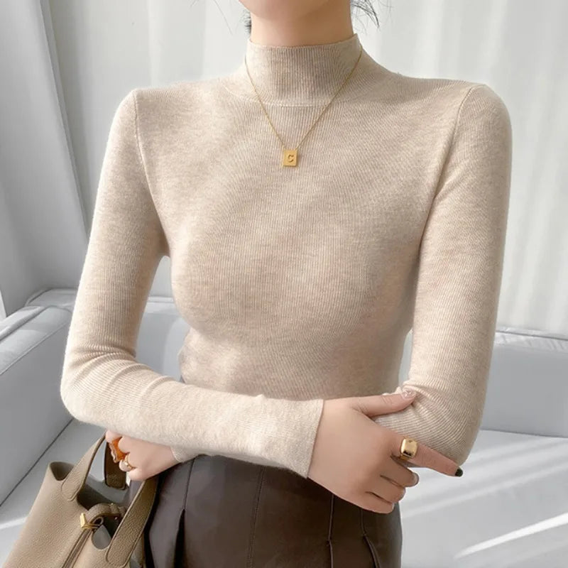 Autumn Winter Chic Bottom Sweaters Women Fashion Turtleneck Pullover Loose Long Sleeve Knitted Jumpers Soft Warm Pull Femme Top