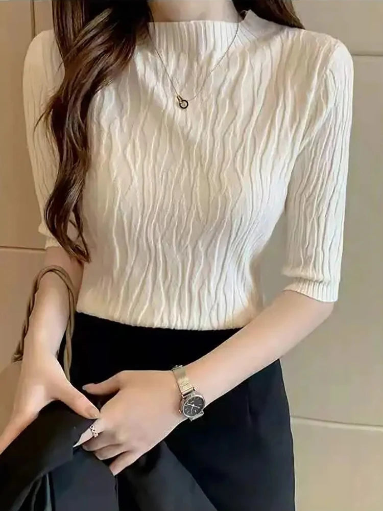 2025 Spring Summer Korean Fashion Solid Sweater Women Short Sleeve Tops Pull Femme Casual Slim Female Pullover Knitted Clothes