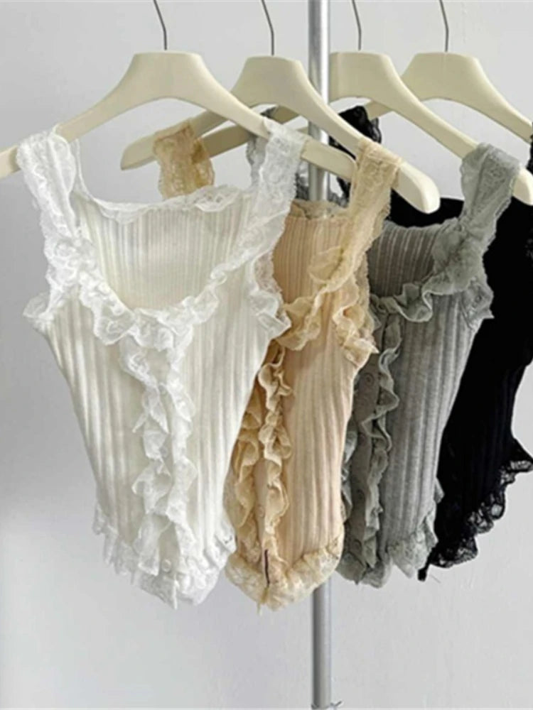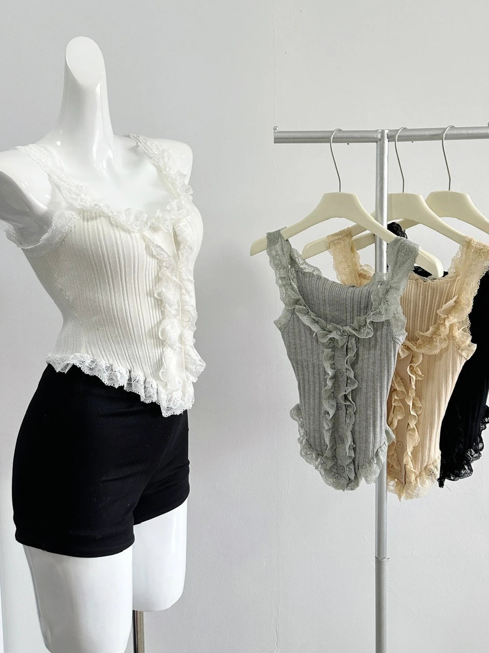 2025 Lace Knitted Summer Basic Shirts White Black Casual Sport Vest Off Shoulder Thin Women's Tank Top