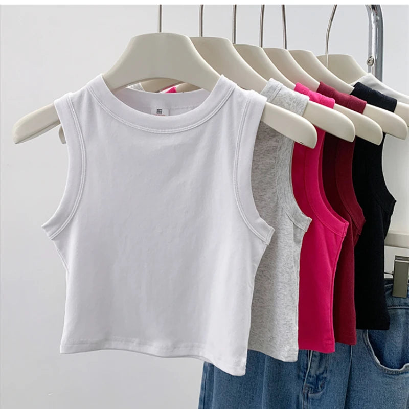 AOSSVIAO 99% Cotton Tops 2025 Neck Summer Basic Shirts White Black Casual Sport Vest Off Shoulder Green Women's Tank Top